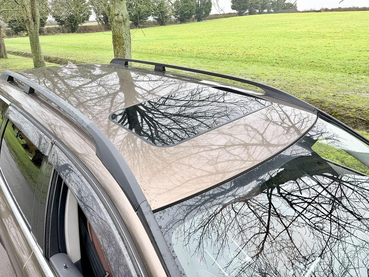 Comfort features include keyless entry and start, power tailgate, dual-zone climate control, automatic headlights, rain-sensing wipers, folding mirrors, ISOFIX, privacy glass, Roof rails, LED daytime running lights, cruise control, drive mode selector, premium sound system Harmon Kardon, ambient lighting, auto-dimming rear-view mirror, and electronic parking brake.